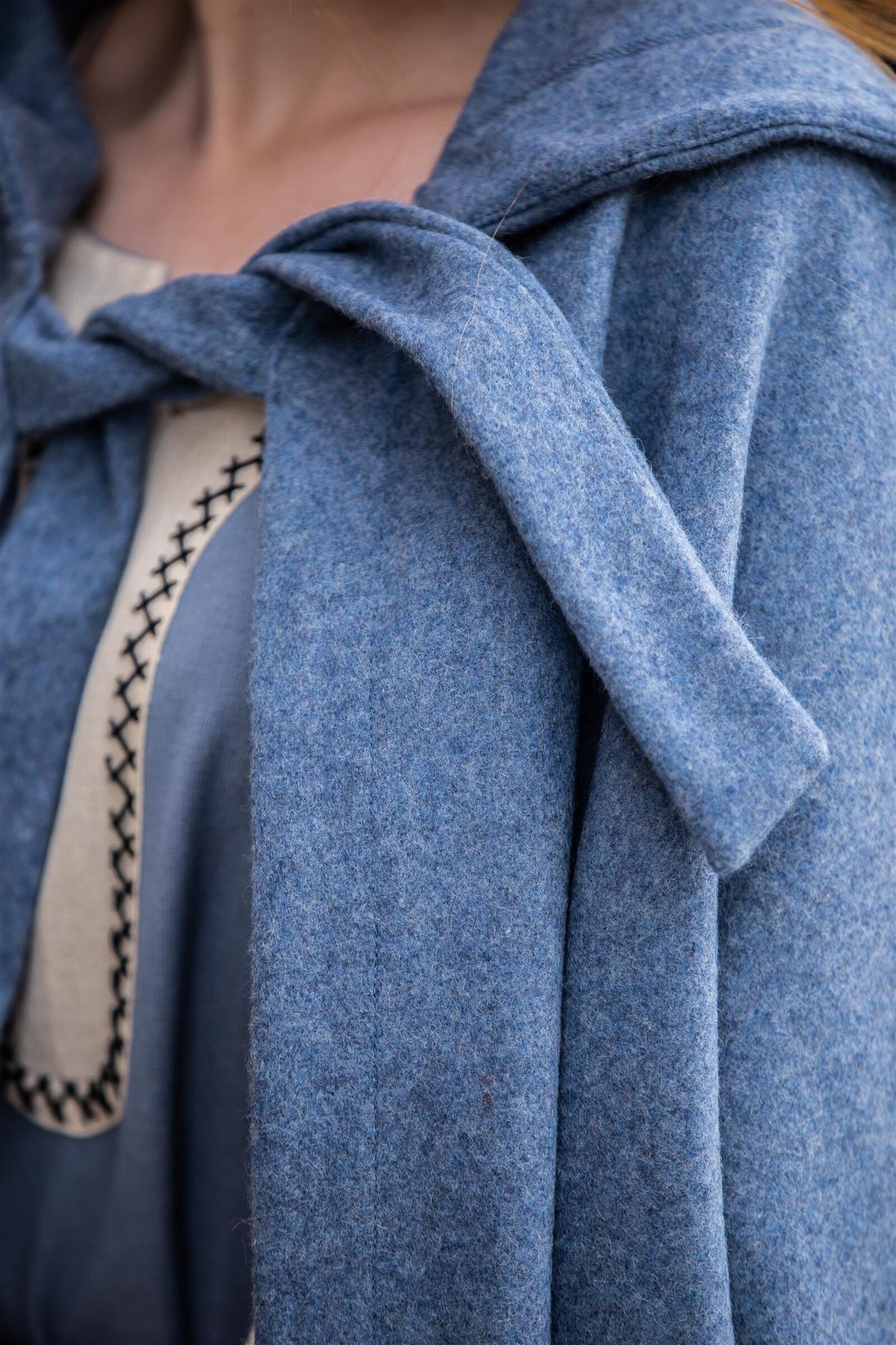 Dieser Wollumhang in der Farbe Natur verbindet authentische Mittelalter-Optik mit praktischer Wärme. Die kurze Kapuze schützt bei Wind, die Bindeoptik sitzt sicher und die großzügige Stoffweite sorgt für eindrucksvollen Fall und volle Bewegungsfreiheit. Ob auf dem Markt, beim Lagerleben oder auf dem Abendumzug – dieser Mantel bringt historischen Look und zuverlässigen Komfort zusammen.